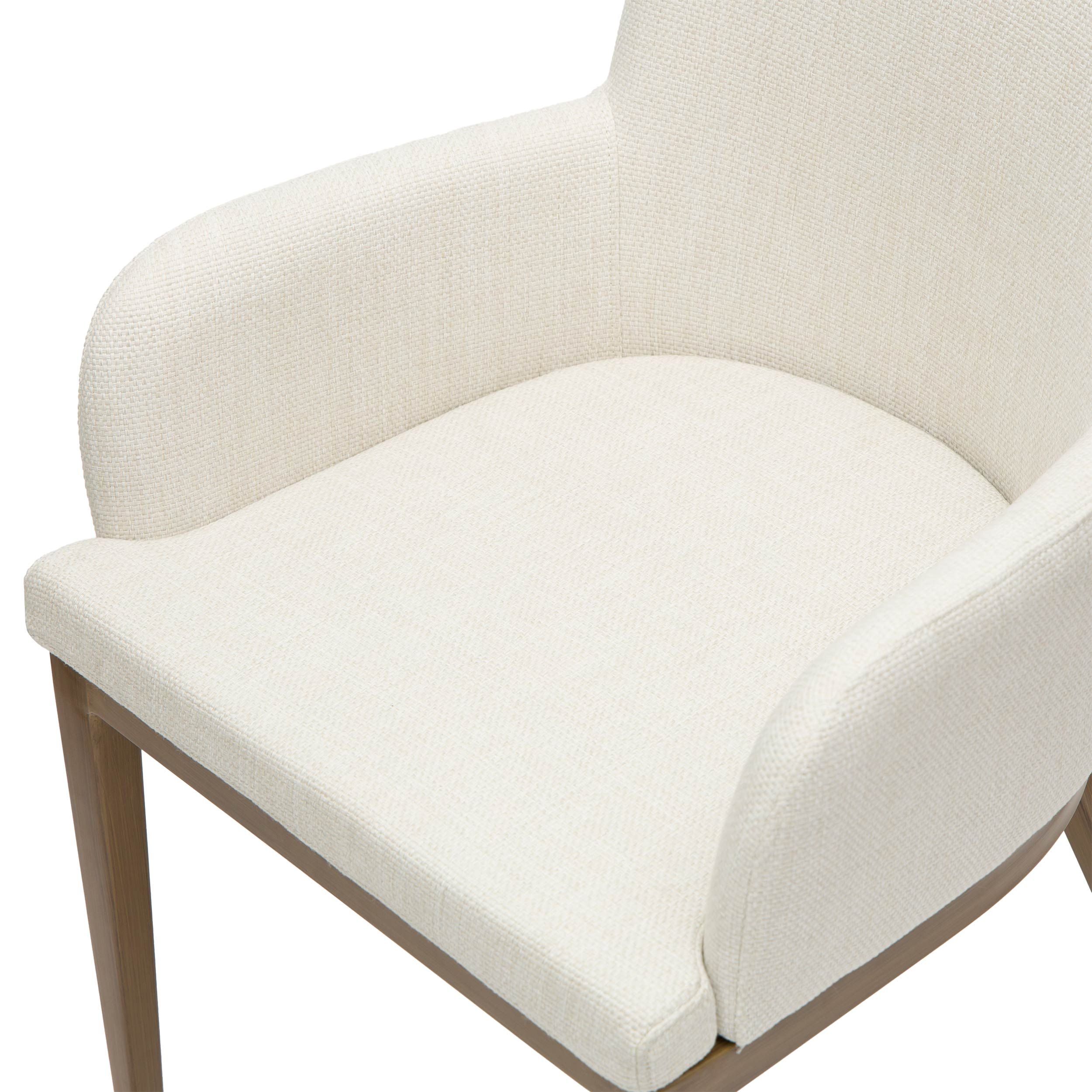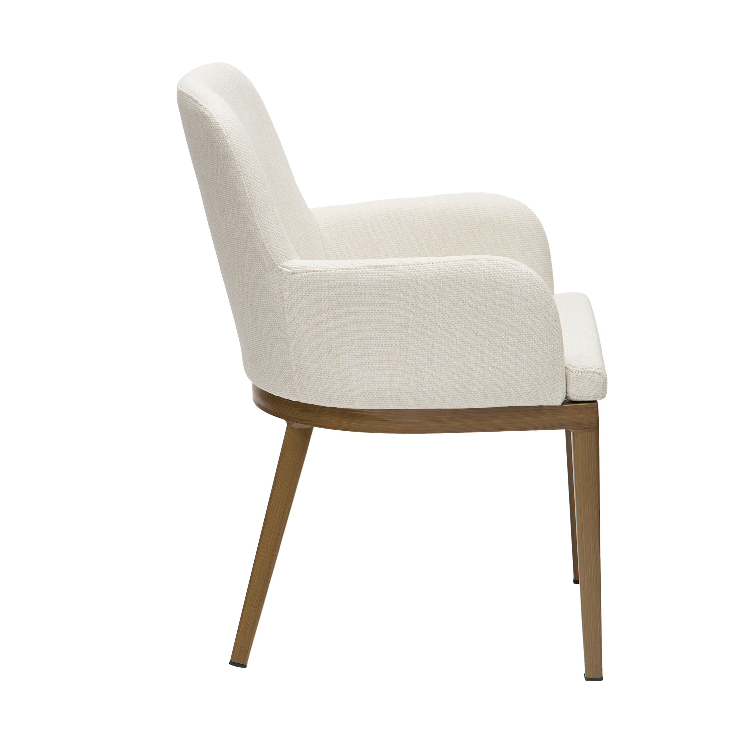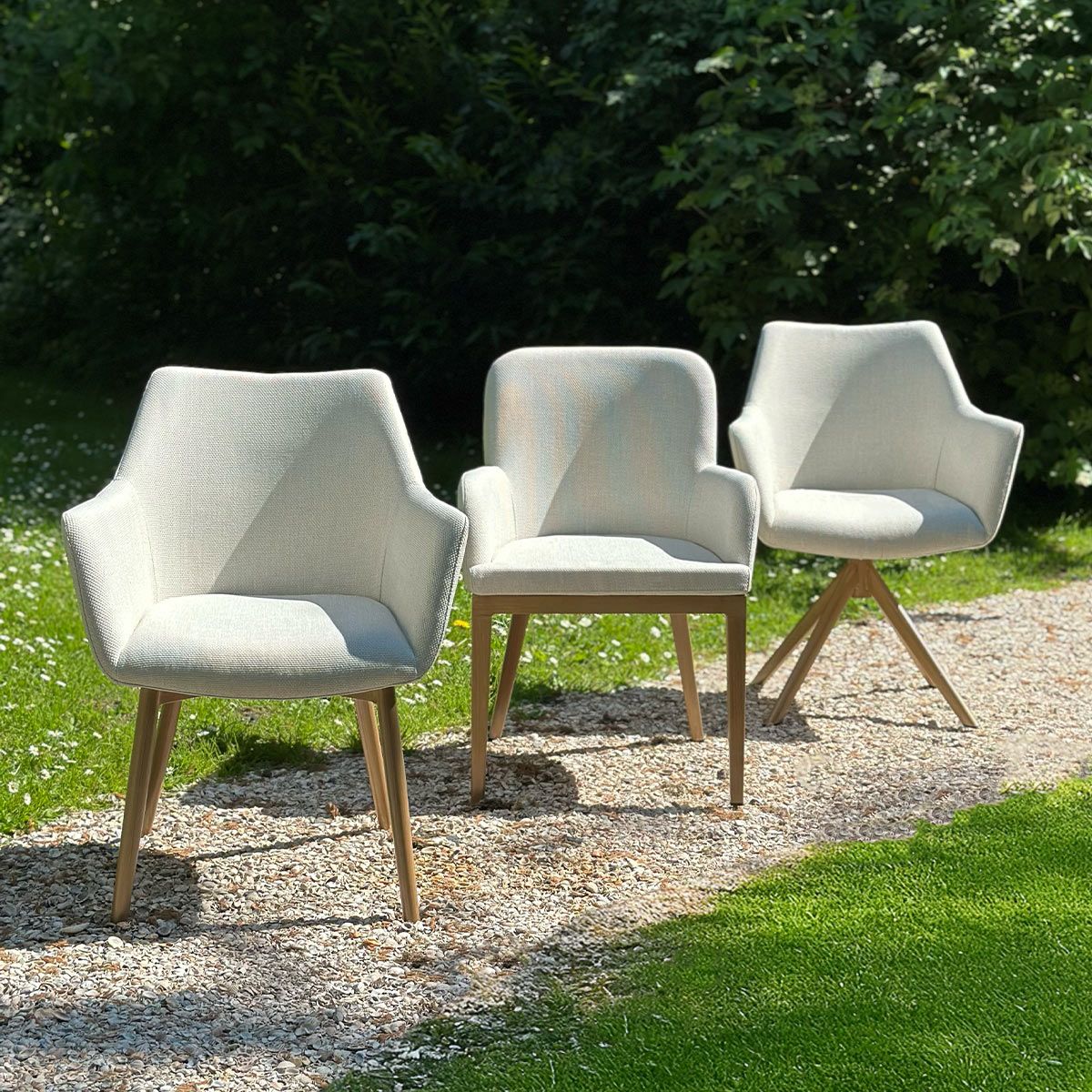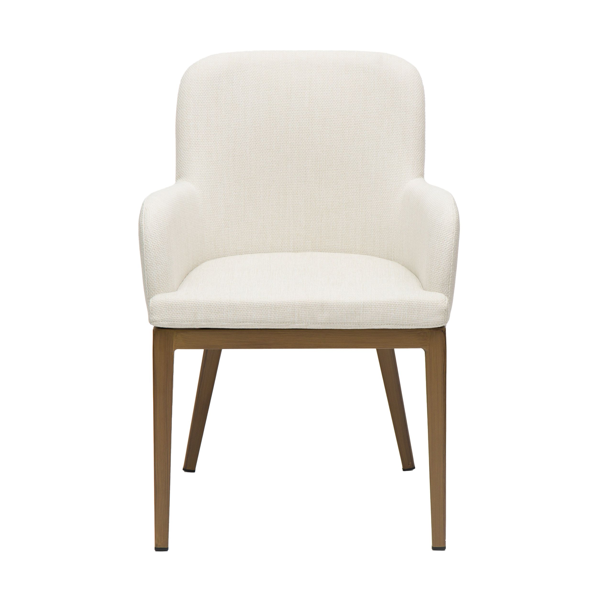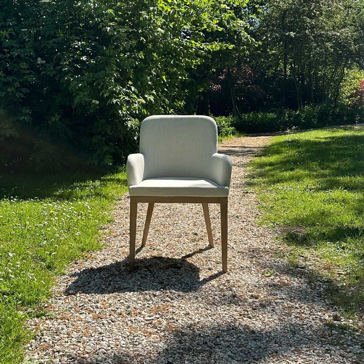 De zitting is bekleed met een outdoor textuurstof die waterbestendig is en extra snel droogt. De stoel heeft een hoogwaardig zitcomfort met een afneembaar zitkussen en goed gepositioneerde armleuningen die rond zijn afgewerkt. Dit geeft de stoel een stijlvolle look.