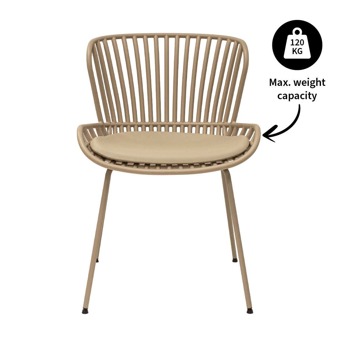 Het kuipvormige zitgedeelte zorgt voor een comfortabele basis, terwijl het PU-leer zitkussen extra zitcomfort biedt en de stoel een luxe uitstraling geeft. Bovendien is het kussen onderhoudsvriendelijk en eenvoudig schoon te maken, ideaal voor buitengebruik. Doordat LOT geen armleuningen heeft, schuif je de stoel gemakkelijk onder vrijwel iedere tafel en behoud je een ruimtelijk geheel op je terras of balkon. Het open ontwerp maakt opstaan daarnaast extra makkelijk en comfortabel.