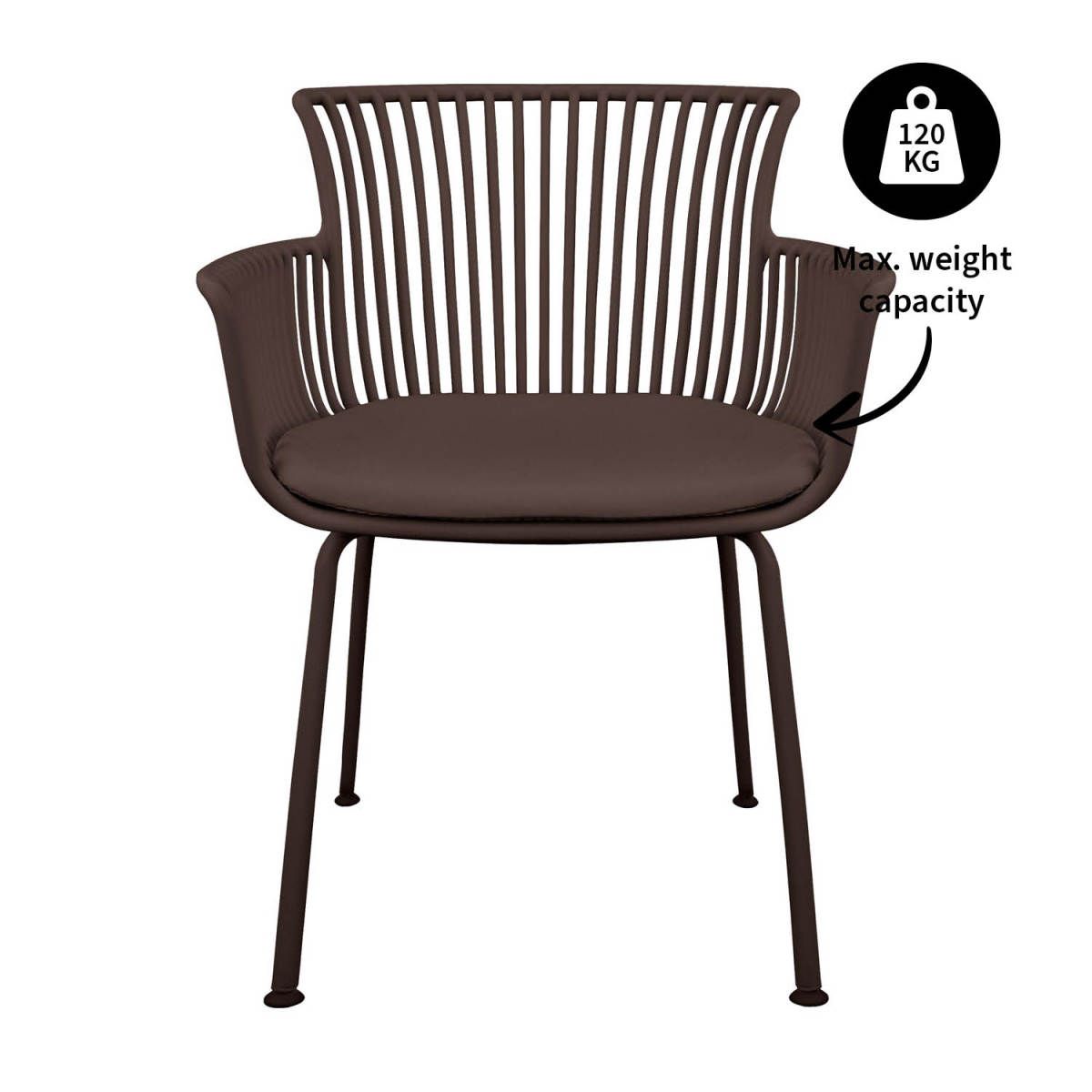 Het kuipvormige zitgedeelte van stevig kunststof geeft OTIS een moderne uitstraling, terwijl het metalen onderstel met beschermende coating zorgt voor stabiliteit én weerbestendigheid. Een stijlvol detail dat zowel praktisch als duurzaam is.