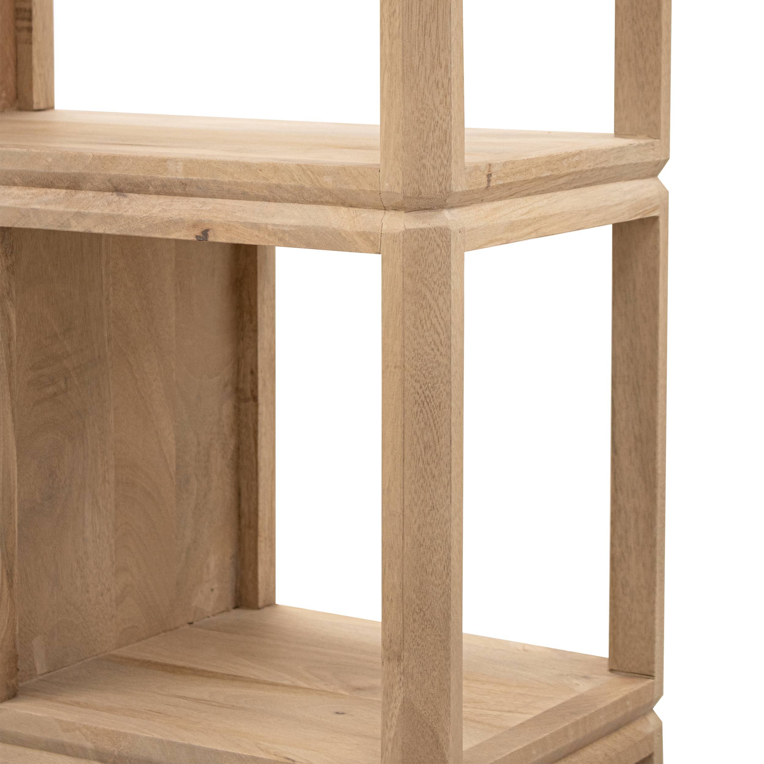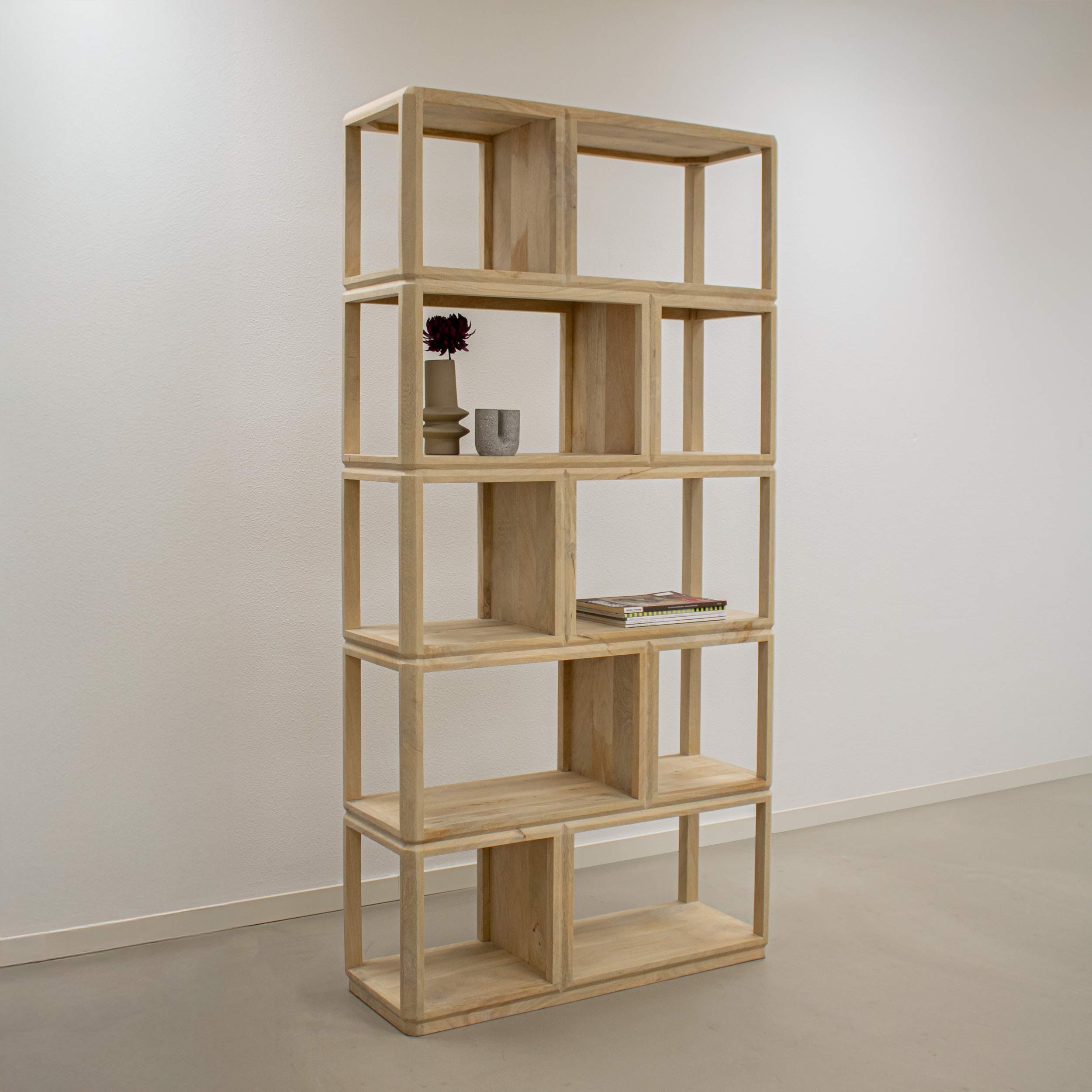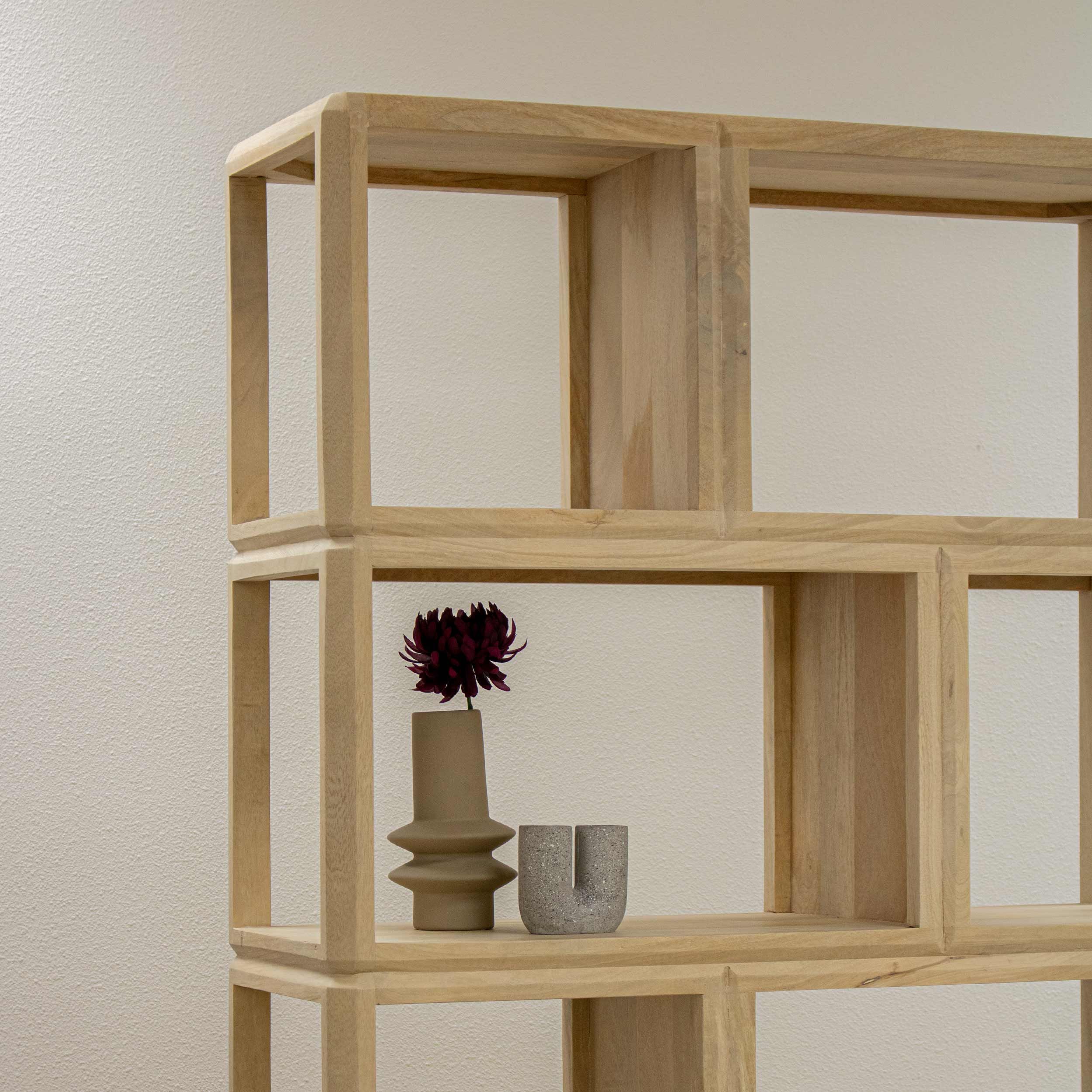 Ontmoet vakkenkast Isak, een echte eyecatcher voor in jouw interieur! Deze stijlvolle vakkenkast is geheel gemaakt van duurzaam mangohout in een lichtbruine kleur en combineert een warme uitstraling met praktische opbergruimte. Isak is zeer stabiel en stevig mede doordat de kast volledig vlak op de grond staat. Dankzij de vele vakken biedt de kast genoeg plek voor al jouw woonaccessoires. De 10 vakken variëren van formaat voor een speels effect. Isak straalt design en functionaliteit uit!
