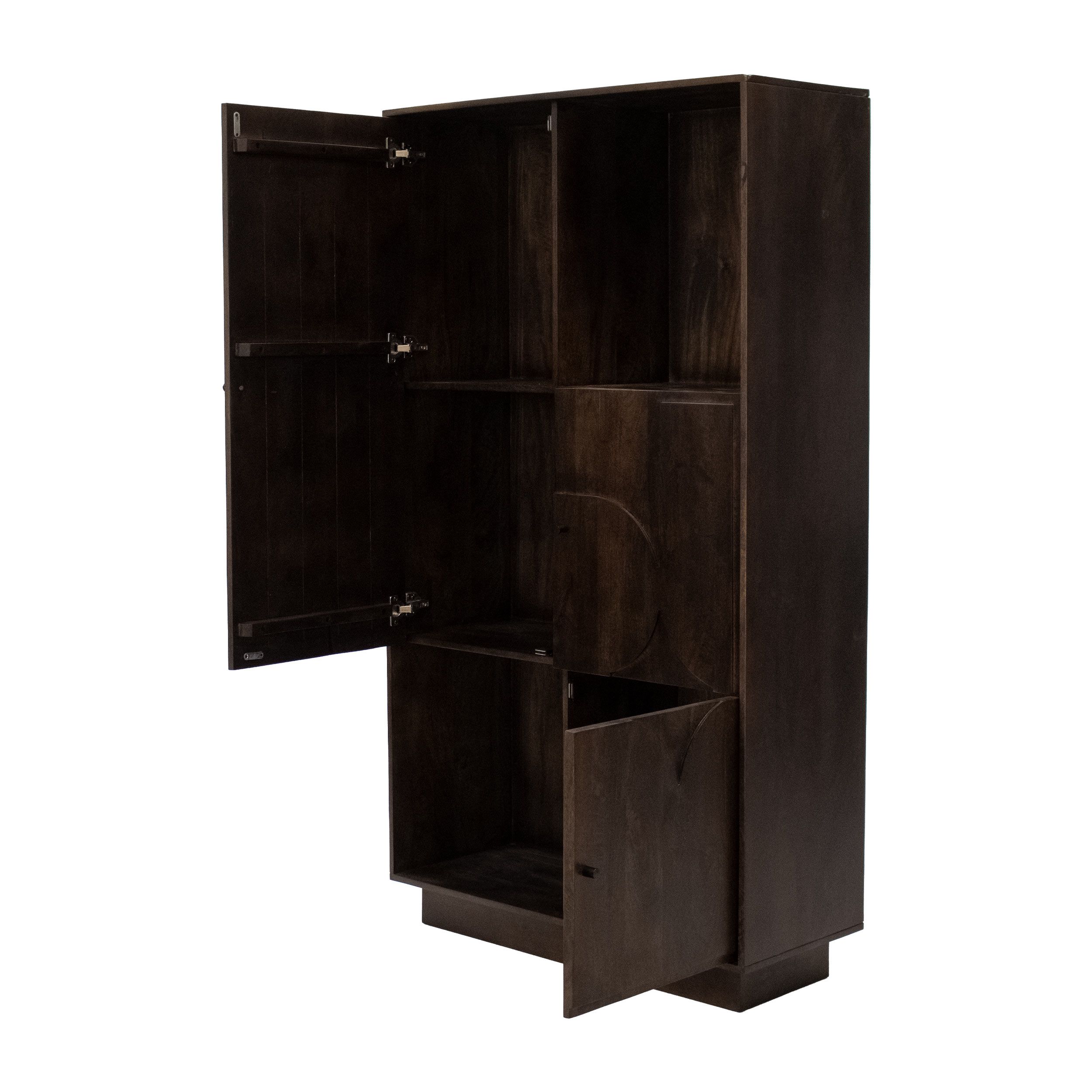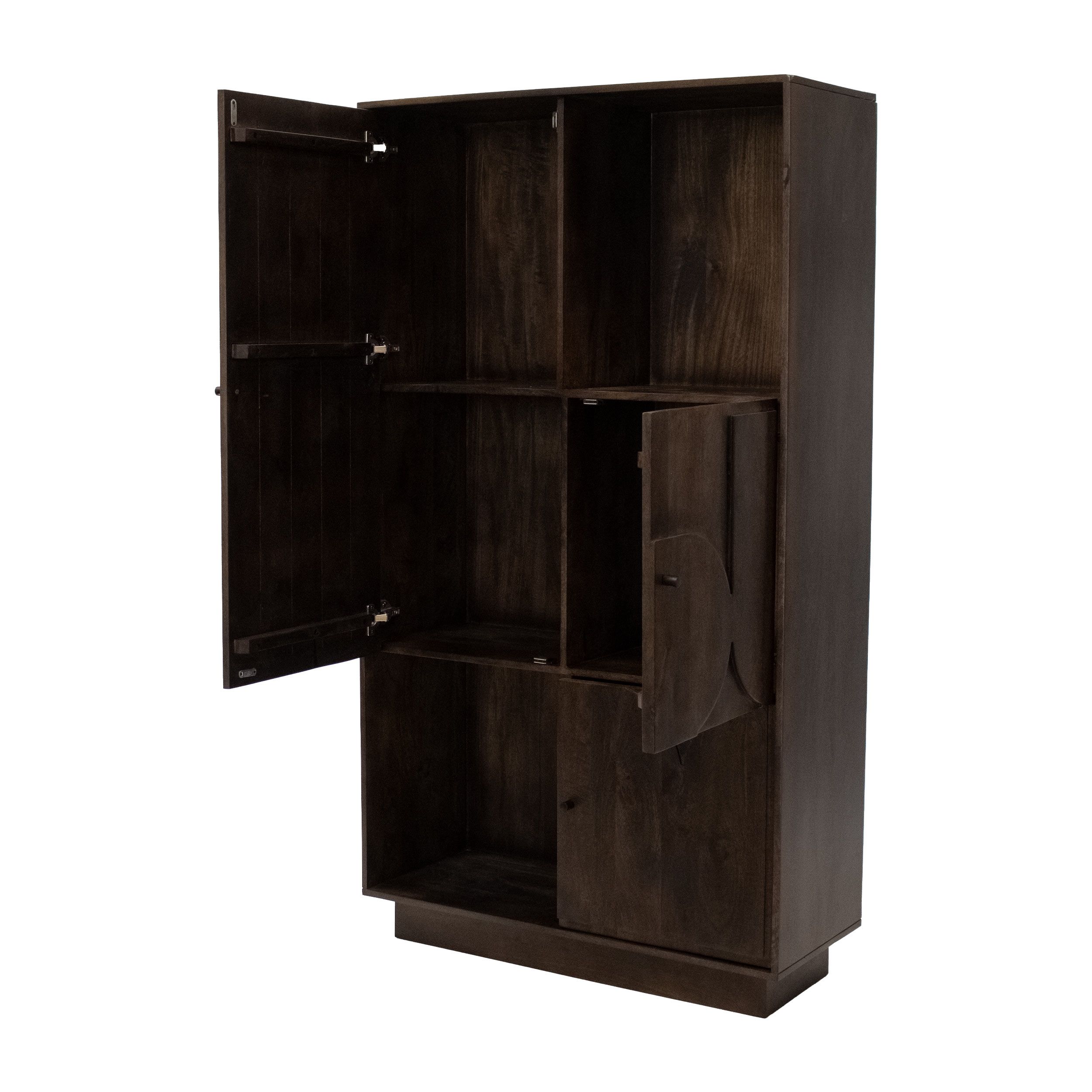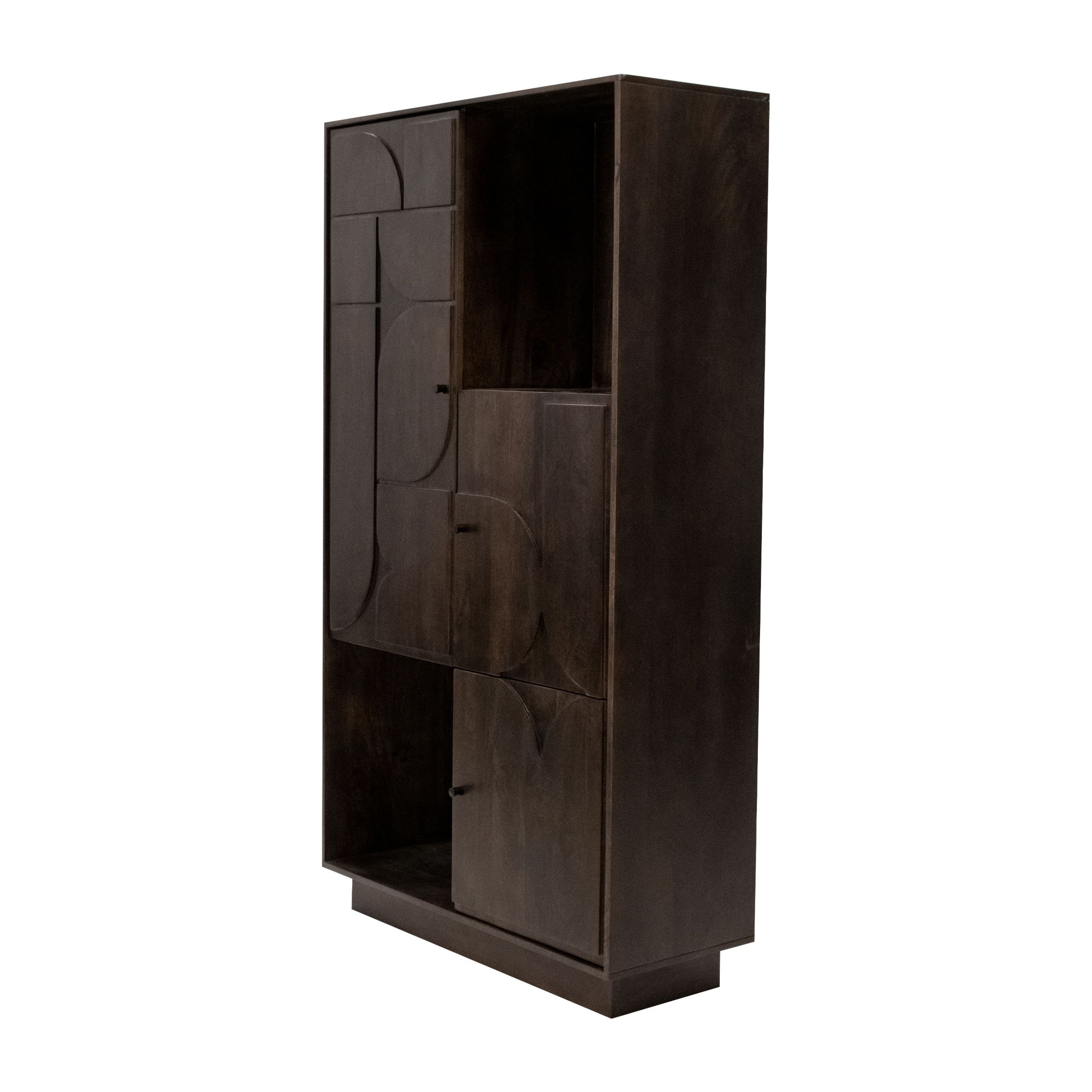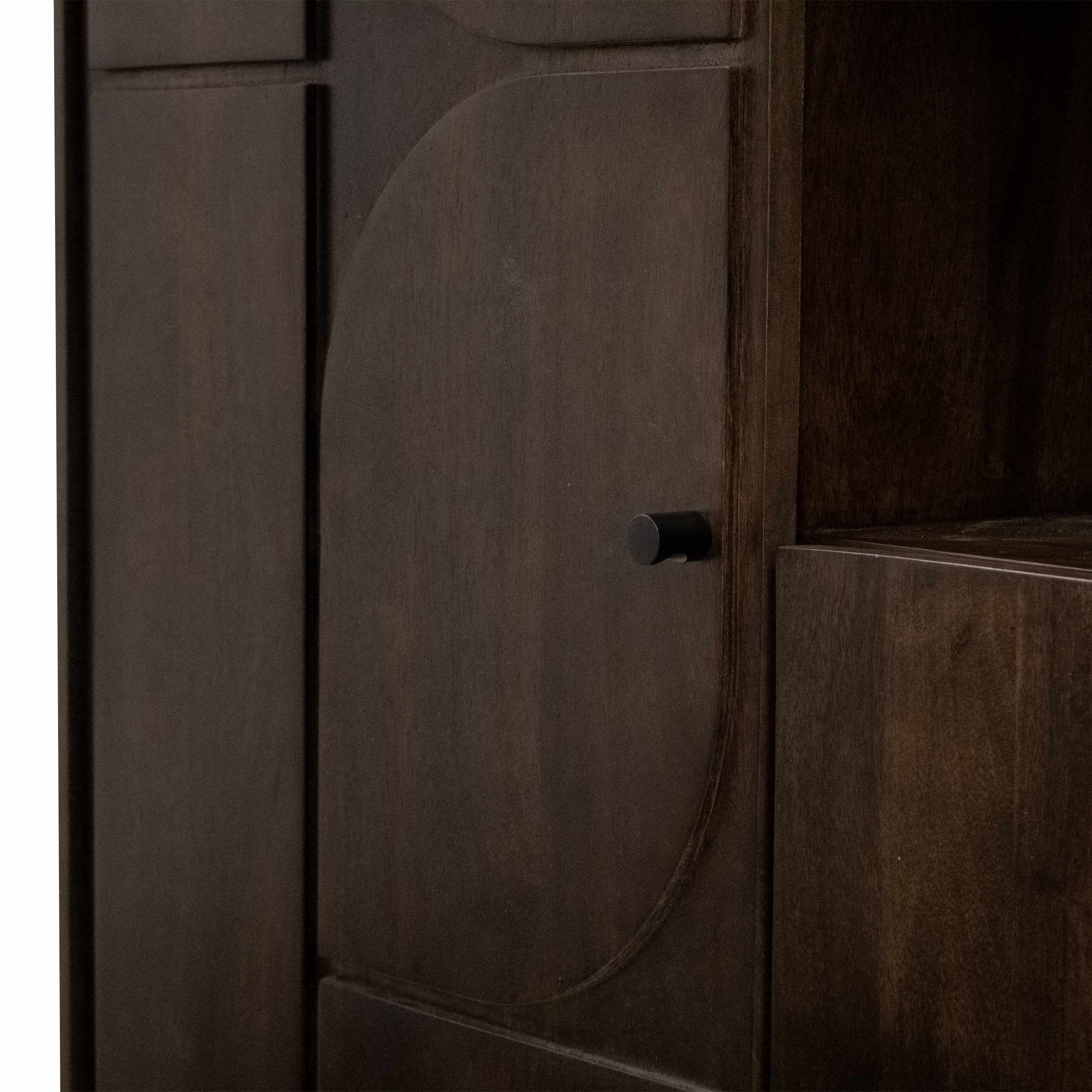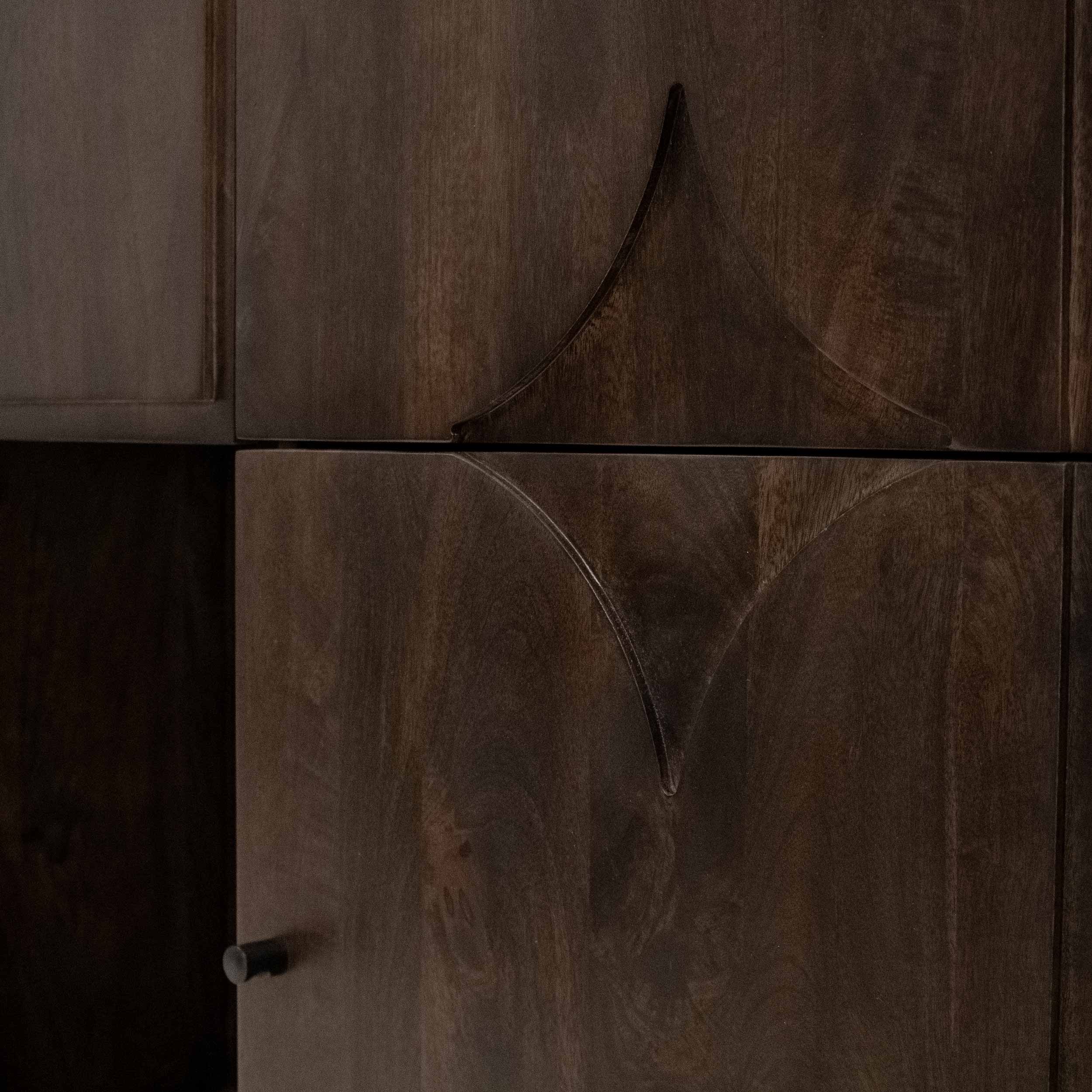 Check out Arvid! Wandkast Arvid is de perfecte combinatie tussen stijlvol en functioneel. Arvid is gemaakt van duurzaam mangohout in een warmbruine kleur. De kast is strak afgewerkt en is zeer stevig doordat de kast stabiel op de grond staat. De vormgeving en unieke vormen op de kastdeuren maken Arvid een echte blikvanger. De wandkast beschikt over meer dan voldoende opbergruimte, 1 grote kast met een dubbel vak, 2 open vakken en nog 2 losse deurtjes onder elkaar. De kastdeuren sluiten met een soft close systeem waardoor de kast prettig is in gebruik.