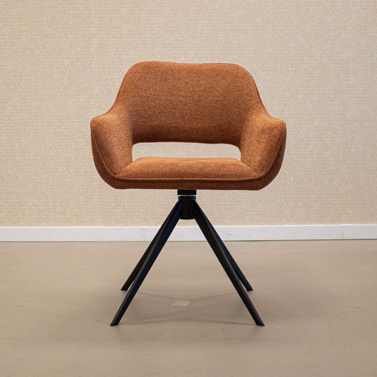 Speelse inkeping in de rugleuning geeft de stoel een eigentijds karakter