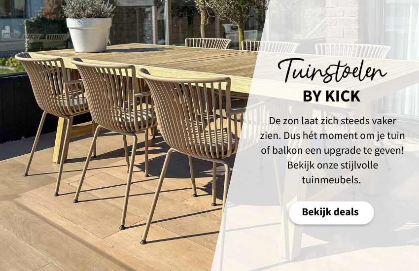 Stoelen heb je niet alleen binnenshuis nodig, maar ook in de tuin zit je graag comfortabel wanneer het mooi weer is. Comfortabele tuinstoelen zorgen ervoor dat je vaker buiten luncht, een spelletje speelt aan de tuintafel of ’s avonds een gezellige barbecue organiseert. Onze tuinstoelen zijn gemaakt van materialen die goed tegen de elementen kunnen, waardoor je niet bang hoeft te zijn dat de bekleding vies wordt. Tuinstoel Otis heeft een stoere uitstraling, terwijl model Coco juist voor een vrolijke sfeer in de tuin zorgt. Op zoek naar een tuinstoel met een zachte zitting? Dan is model Jolie een goede keuze.